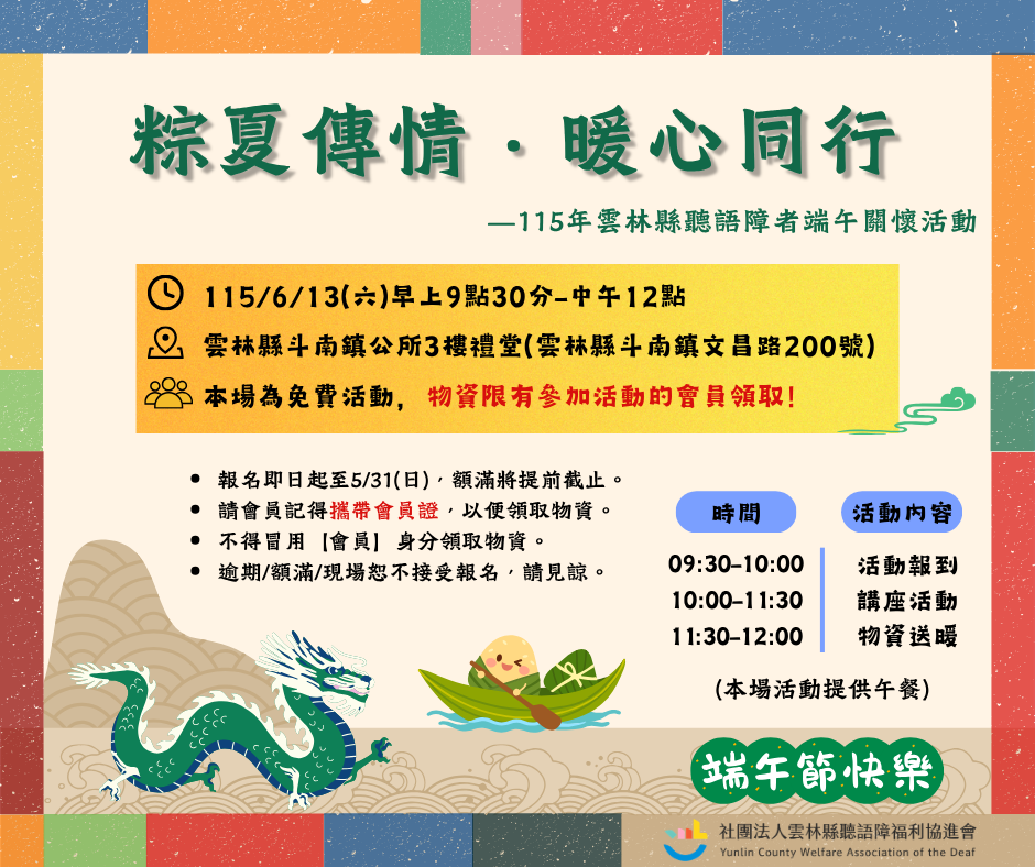 - 【徵求手語志工】雲林縣2026年城鎮韌性演習救濟站開設演練 因應2026年城鎮韌性演習,模擬進入動員實施階段(戰時情境),雲林縣政府依據《民防法》與《戰時災民收容救濟站設置原則》,啟動本縣「