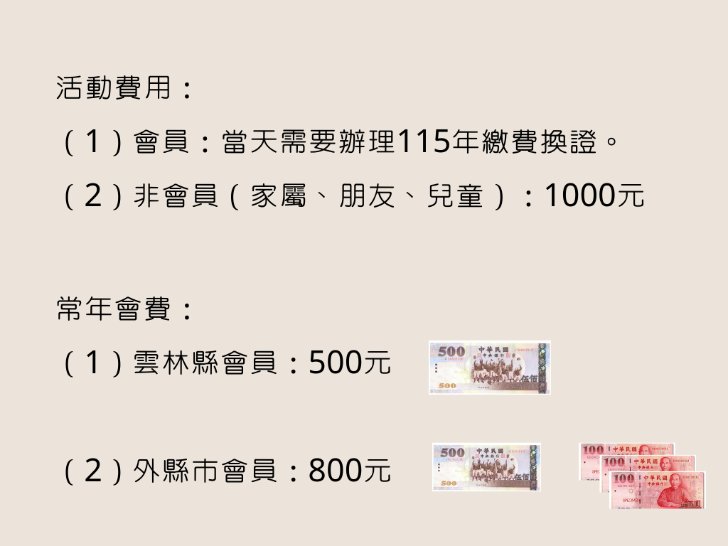 ➤ 非會員(含家屬、兒童、朋友)|1000元(請於1/2前完成匯款)